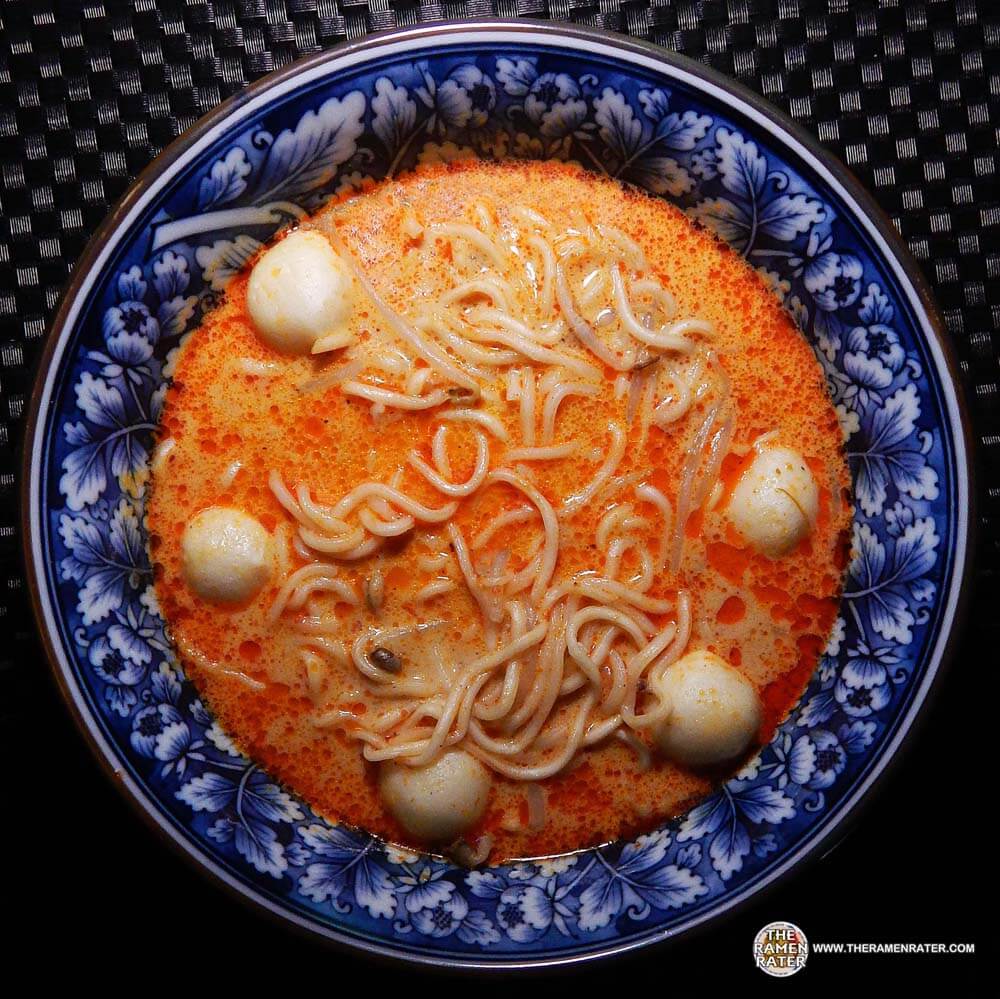 Finished (click image to enlarge). Added fish balls. The noodles are thick and have a great chewiness to them – definitely on the premium end of the stick and very impressive. The broth is a deep and flavorful one, with a richness to it that’s really quite amazing. It’s thick from the coconut powder which gives it a sort of milkiness. The paste had all sorts of things going on – has a great homemade ‘stewed for hours’ kind of feel. It’s a little spicy and a little sweet and must be tried firsthand. Masterfully executed. 5.0 out of 5.0 stars. UPC bar code 013934067995.
